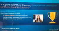 Sygnature Discovery are a leading drug discovery CRO that offers a drug discovery service to its clients. In July 2022, they organised a virtual postgraduate symposium that showcased presentations and flash presentations from organic chemistry PhD students and Postdocs. Our own Matt Anderson (Cohort 2) and Jessica Graham (Cohort 1) participated and presented flash presentations that were showcased on LinkedIn.