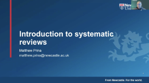 We’re kicking things off with Introduction to Systematic Reviews and Writing for Publications, delivered by Professor Matthew Prina (Newcastle University). This session offers a practical overview of how to approach systematic reviews and prepare your work for publication, as well as a Q&A.